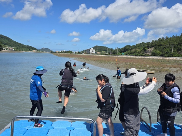 전남교육청은 초등 생활수영 교육 내실화를 위해 실내 수영장이 아닌 실제 자연환경을 활용한 지역 특화 수영 교육 프로그램을 지원하고 있다.