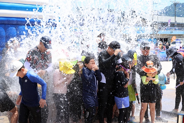 (전남=NSP통신) 김용재 기자 = 정남진 장흥 물축제를 찾은 관광객들이 29일 시원하게 쏟아지는 물줄기를 맞으며 무더위를 식히고 있다. 제18회 정남진 장흥 물축제는 오는 8월 3일까지 장흥군 탐진강과 우드랜드 일원에서 열린다.