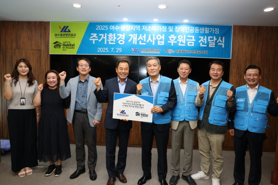 (전남=NSP통신) 김성철 기자 = 여수광양항만공사(이하 공사, 사장 직무대행 황학범)는 지역 내 저소득가정과 장애인 공동생활가정의 주거환경 개선을 위한 ‘희망의 집짓기·집고치기’ 사업 후원금 전달식을 개최했다고 밝혔다.