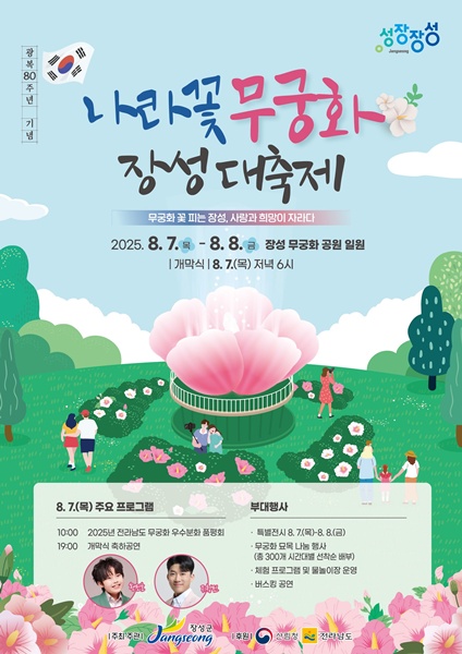 먼저 오는 7, 8일 이틀 동안 광복 80주년 기념 ‘나라꽃 무궁화 장성대축제’가 장성읍 장성무궁화공원에서 열린다.