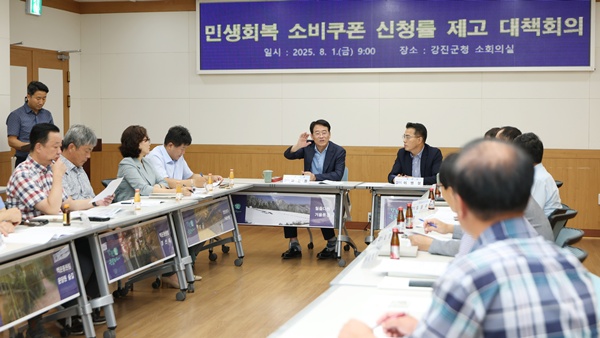 (전남=NSP통신) 김용재 기자 = 강진군이 최근 군청 소회의실에서 정부의 민생회복소비쿠폰이 지역경제에 신속히 흡수되도록 하기 위해 긴급 대책회의를 개최했다.