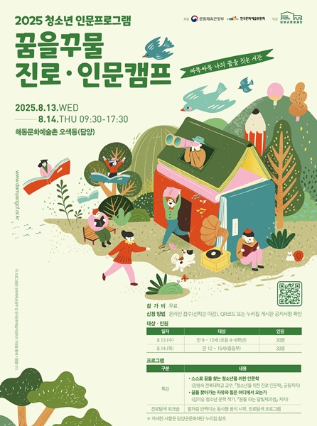 (전남=NSP통신) 김용재 기자 = 담양군문화재단(이사장 정철원·이하 재단)이 오는 13, 14일 이틀간 관내 청소년을 대상으로 진로인문 캠프를 진행한다.