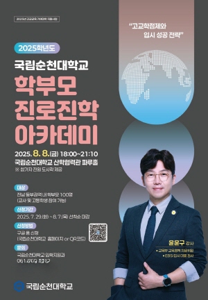 (전남=NSP통신) 남정민 기자 = 국립순천대학교(총장 이병운)가 오는 8월 8일 오후 6시 산학협력관 파루홀에서 ‘2025학년도 학부모 진로진학 아카데미’를 개최한다고 5일 밝혔다.