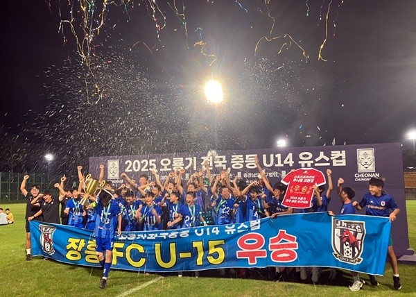 (전남=NSP통신) 김용재 기자 = 장흥군 축구 스포츠클럽인 장흥FC가 충남 천안에서 열린 ‘2025 오룡기 전국 중등 축구대회’에서 저학년부(U-14) 우승을 차지했다.