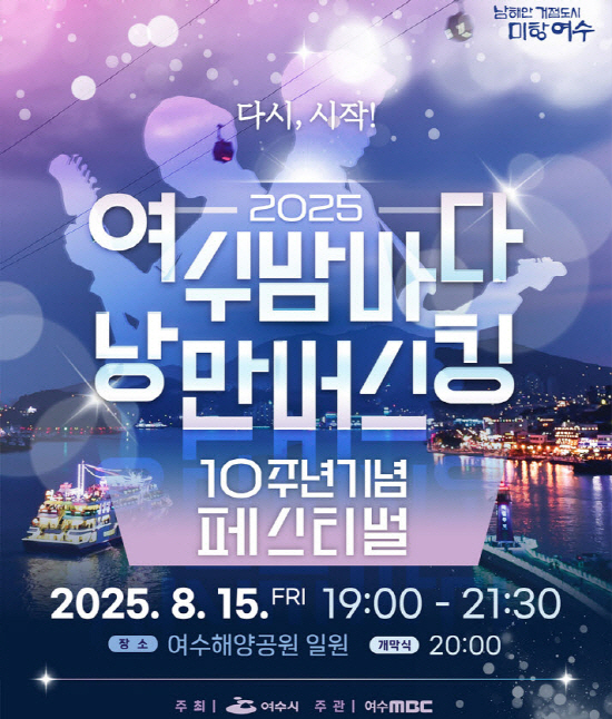 먼저 ‘2025 여수밤바다 낭만버스킹 페스티벌’은 올해 낭만버스킹 10주년을 맞아 다양한 거리공연을 선보인다. 1.4km에 이르는 버스킹 로드, 베스트 버스커 축하공연, EDM 공연 등이 진행되며 시민과 관광객에게 여수 밤바다의 매력과 활기를 선사할 예정이다.