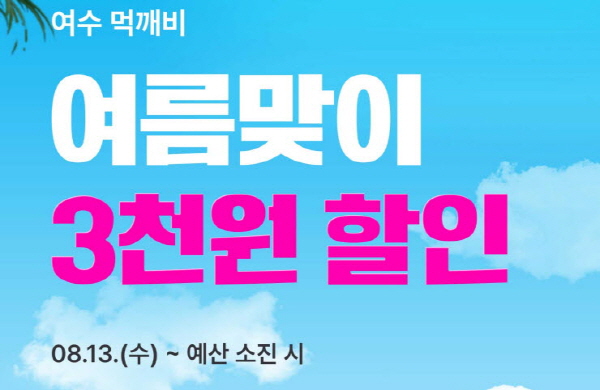 (전남=NSP통신) 서순곤 기자 = 여수시는 지역 소상공인 지원과 시민 부담 경감을 위해 공공배달앱 ‘먹깨비’ 여름맞이 3천 원 할인행사를 8월 13일부터 예산 소진 시까지 진행한다.