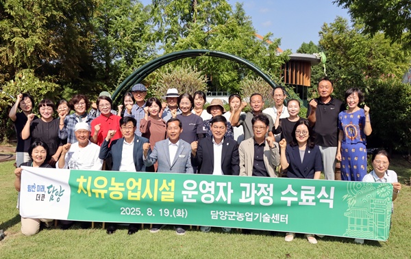 (전남=NSP통신) 김용재 기자 = 담양군(군수 정철원)은 지난 19일 담양에코센터에서 ‘2025년 치유농업시설 운영자 교육’의 수료식을 개최하고, 치유농업 전문 인력 22명의 수료를 축하했다.