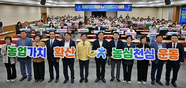 (광주=NSP통신) 김용재 기자 = 농협광주본부(본부장 이현호)는 8일 광주본부 2층 대강당에서 박병규 광산구청장, 광주광역시 여성단체협의회, 고향주부모임, 농가주부모임, 한국새농민회 등 소비자·농업인 단체 대표와 회원, 임직원 150여 명이 참석한 가운데 농심천심 운동 발대식을 개최했다.