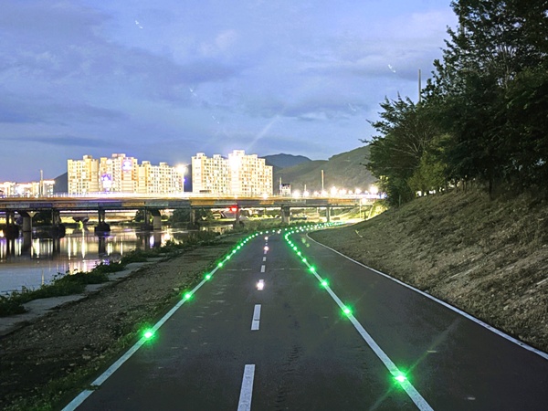 (전남=NSP통신) 김용재 기자 = 장성군이 자전거 이용자 안전 확보를 위해 황룡강변 자전거도로에 ‘활주로형 엘이디(LED) 표지병’을 설치했다.