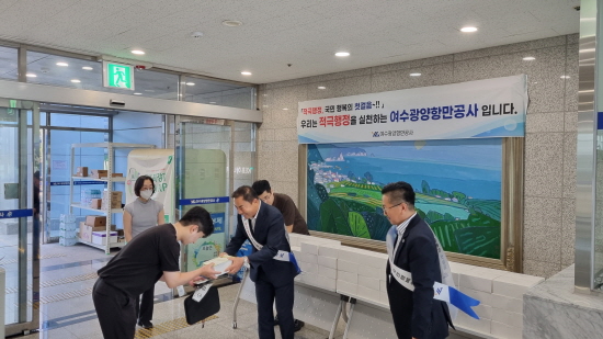 (전남=NSP통신) 김성철 기자 = 여수광양항만공사(YGPA, 사장 직무대행 황학범)는 지난 17일 사옥입주기업 임직원을 대상으로 ‘적극행정, 국민행복의 첫걸음’이라는 표어 아래 적극행정 실천 캠페인을 실시했다고 밝혔다.