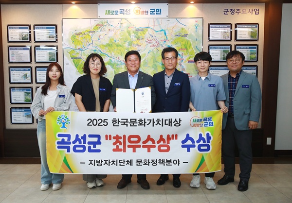 (전남=NSP통신) 김용재 기자 = 곡성군(조상래 군수)이 2년 연속 ‘2025 한국가치문화대상’에서 최우수상을 수상하며 지역 문화정책의 우수성을 다시 한번 인정받았다.