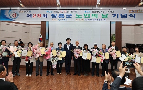 (전남=NSP통신) 김용재 기자 = 장흥군은 23일 오전 장흥군민회관에서 ‘제29회 노인의 날 기념식’을 개최했다.