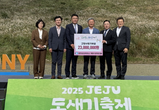 (전남=NSP통신) 김성철 기자 = 광양상공회의소(회장 우광일)는 지난 25일 제주 도새기축제 개막식에서 고향사랑기부제 교차기부금 2300만원을 전달하였다고 밝혔다.