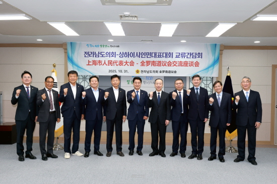 (전남=NSP통신) 김성철 기자 = 전라남도의회(의장 김태균)는 오전 도의회에서 중국 상해시 인민대표대회 대표단을 공식 접견하고 양 지역 지방의회 간 우호교류 및 협력 방안을 논의했다.