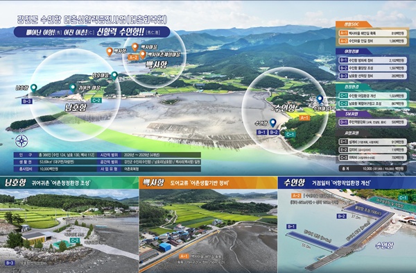 2026년 강진군 수인항 어촌신활력증진사업은 향후 4년간 국비 70억원을 포함한 총 100억원의 사업비가 투입된다.