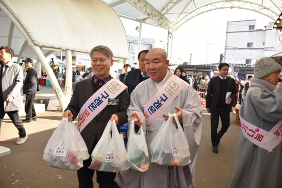 (전남=NSP통신) 김성철 기자 = 대한불교조계종 제19교구 본사 지리산대화엄사(주지 우석 스님)는 오전 10시~11시 30분까지 구례 오일장에서 지역 상인을 위한 ‘구례온’ 구례 지역사회 온기나눔 행사를 개최했다.