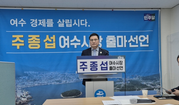 주종섭 의원은 24일 오전 여수시청 브리핑룸에서 기자회견을 열고 “지속가능한 첨단산업 생태계 조성과 시민들의 삶의 질 향상을 위해 최선을 다하겠다”며 여수시장 출마를 선언했다.