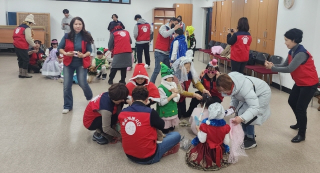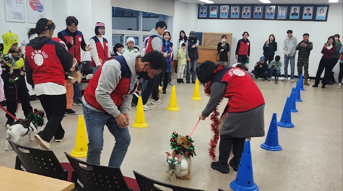 (경기=NSP통신) 김종식 기자 = 21일 충남 천안시 동남구 신방동 주민센터에서 둥글개봉사단(단장 이웅종 교수)이 크리스마스를 맞이해 다문화 가족 어린이와 함께 하는 동물매개치유 활동을 전개했다.