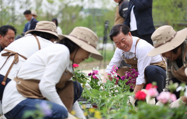NSP통신-박승원 광명시장이 지난해 4월 새빛공원에서 열린 광명시 새빛정원관리단 발대식에서 참여자들과 정원을 가꾸고 있다. (사진 = 광명시)