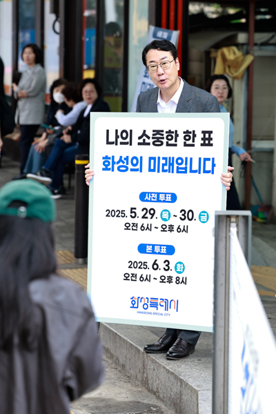 정명근 화성시장은 “투표는 단순한 선택을 넘어 시민 한 사람 한 사람이 직접 사회의 방향을 정하는 가장 강력한 참여 방식”이라며 “이번 캠페인이 우리 이웃, 가족, 친구 모두가 투표의 중요성을 다시 한번 되새기고 책임 있는 선택으로 이어지는 계기가 되길 바란다”고 말했다.