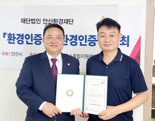 (경기=NSP통신) 김병관 기자 = 경기 안산환경재단(대표 홍희관)은 지난 13일 부흥금속공업사(대표 이낙원)에 환경인증제 블루등급 인증서와 현판을 수여했다.