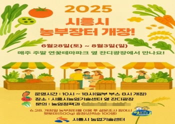 (경기=NSP통신) 서국현 기자 = 경기 시흥시(시장 임병택)가 지역농산물 소비 촉진과 농가 판로 확대를 위해 오는 28일부터 8월 3일까지 농부장터를 연꽃테마파크 잔디광장에서 개장한다.