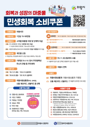 민생회복 소비쿠폰은 경기 침체 장기화로 어려움을 겪는 시민들의 생활 안정을 도모하기 위해 추진되는 사업으로 온라인과 오프라인(주민센터, 각 은행)을 통해 동시에 지급되고 있다.