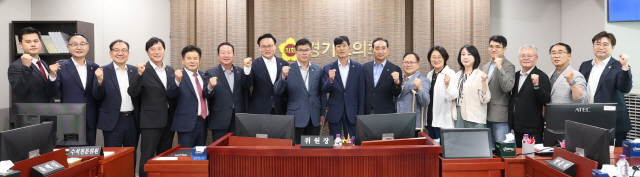 경기도의회가 23일 제4기 경기도청 예산결산특별위원회 위원회를 열었다. 사진은 위원회 참석 의원들의 기념촬영 모습. (사진 = 경기도의회)