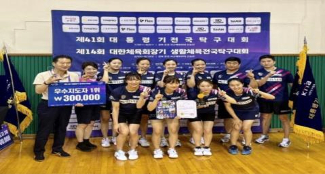 화성도시공사 탁구단이 제41회 대통령기 전국탁구대회 여자 일반부 단체전에서 우승 후 기념 촬영하고 있다. (사진 = 화성시)