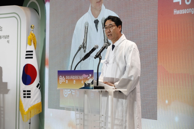 정명근 화성시장이 화성독립운동기념관 개관식에서 인사말을 하고 있다. (사진 = 화성시)