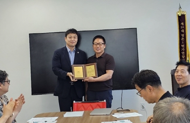 (경기=NSP통신) 김종식 기자 = 유영일 경기도의회 도시환경위원회 부위원장(국민의힘, 안양5)이 21일 범계로데오상인연합회로부터 지역상권 활성화에 기여한 공로로 감사패를 받았다.