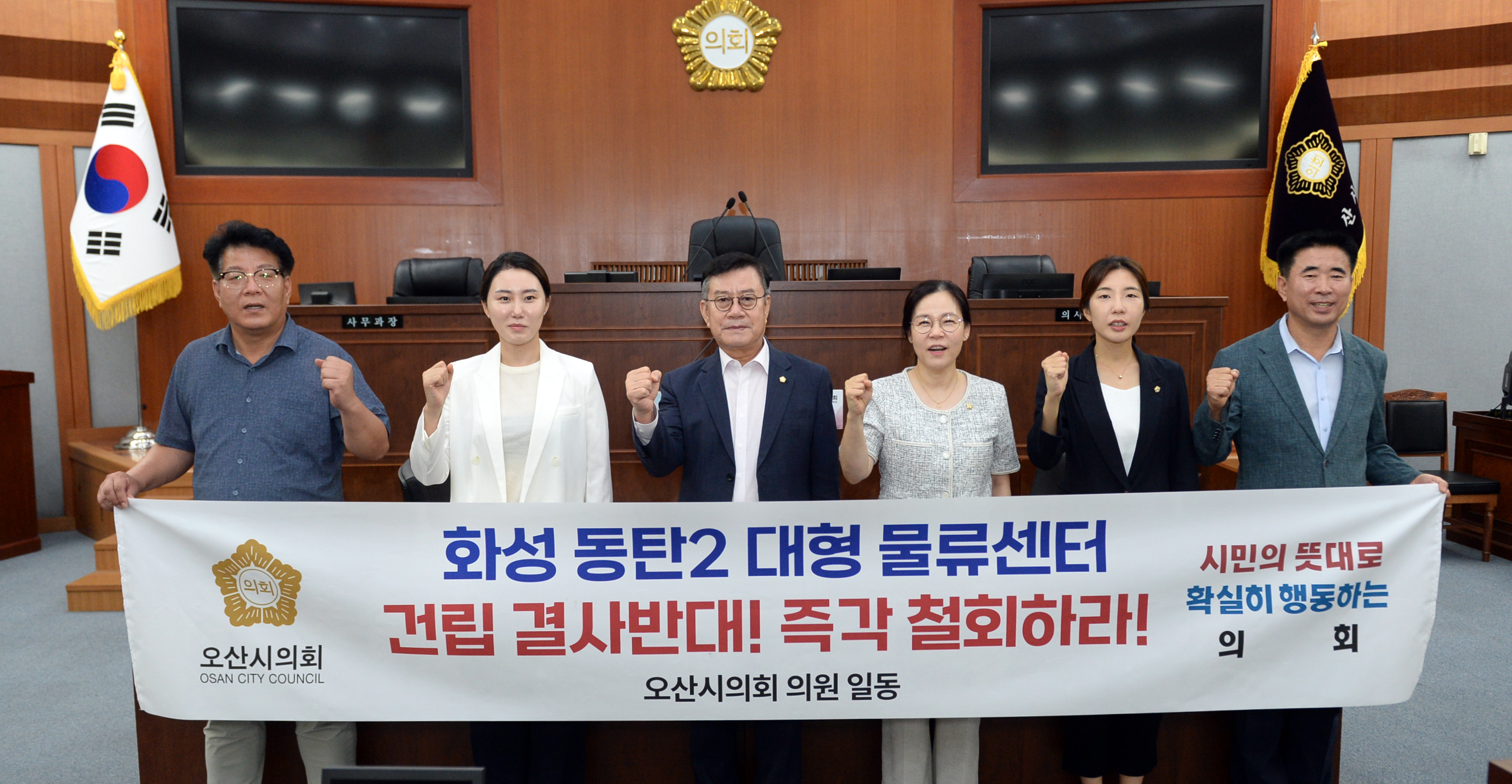 오산시의회는 “화성 동탄2 유통3부지 물류센터 건립은 전면 백지화돼야 한다”면서 “교통대란, 안전 위협, 환경 파괴를 외면한 채 추진되는 어떠한 시도도 끝까지 막아낼 것이며 오산시민의 생명과 권리를 지키기 위해 어떤 타협도, 어떤 양보도 없을 것”이라고 천명했다.