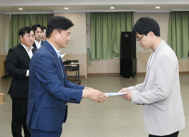 수여식은 조용익 부천시장이 직접 임용장을 전달하며 승진자의 그동안 노력에 감사하고 9급 직원들의 첫 승진을 축하하기 위해 마련됐다.