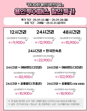 현장 매표소에서 신분증을 제시하거나 ‘용인시티포인트’ 앱을 활용하면 할인 혜택을 받을 수 있다.