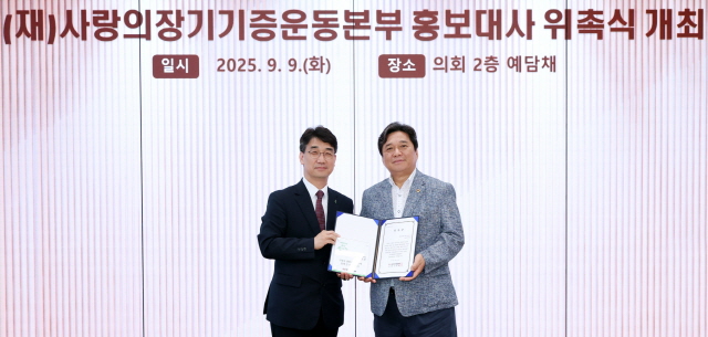 (경기=NSP통신) 김병관 기자 = 경기도의회 교육기획위원회 소속 김호겸 도의원(국민의힘, 수원5)이 9일 ‘장기기증의 날’을 맞아 재단법인 사랑의 장기기증운동본부 홍보대사로 위촉됐다.