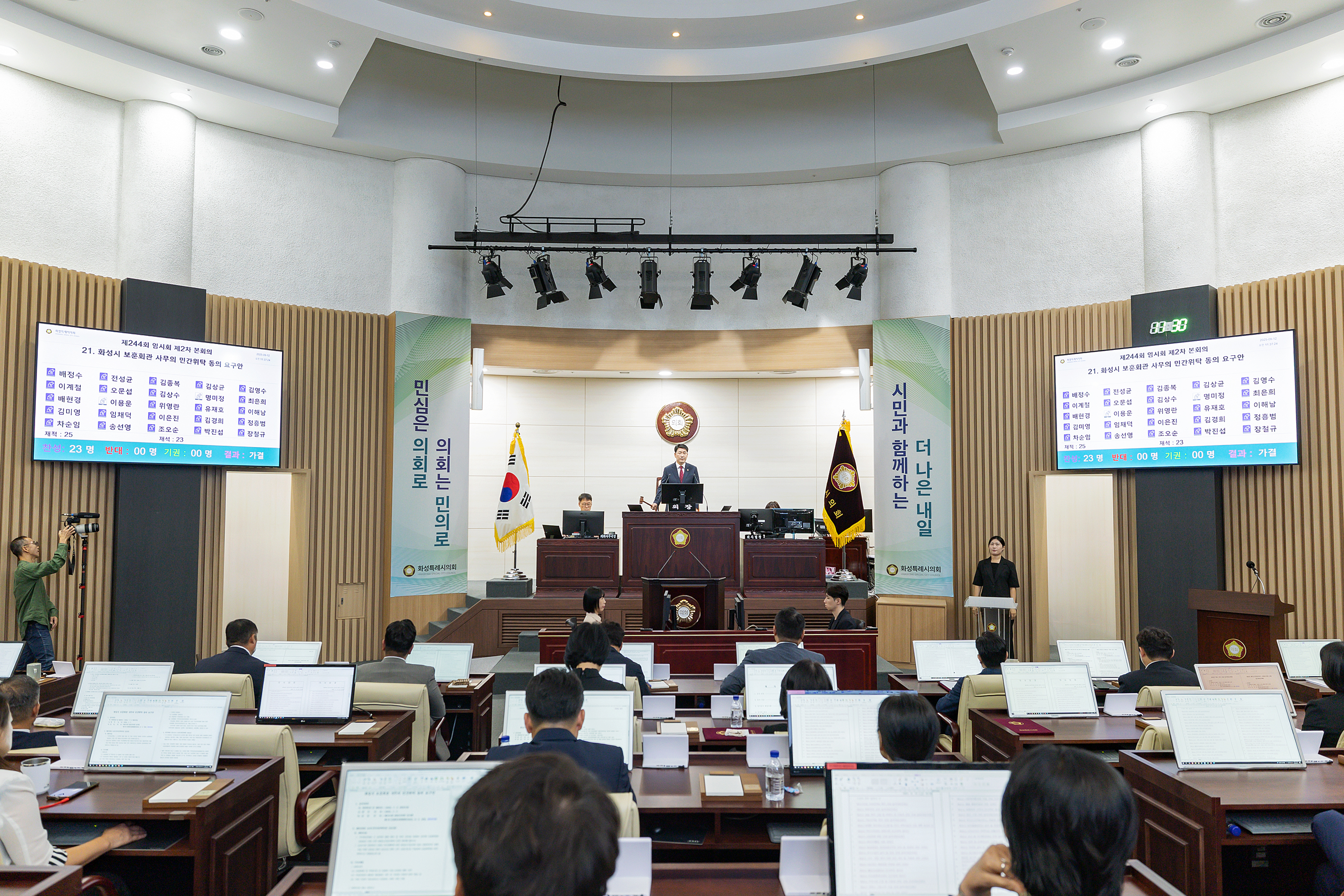 (경기=NSP통신) 조현철 기자 = 경기 화성시의회(의장 배정수)가 12일 제244회 임시회 제2차 본회의를 열고 총 36건의 안건을 심의·의결하며 11일간의 회기를 마쳤다.