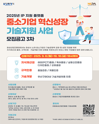 (경기=NSP통신) 조현철 기자 = 경기 화성산업진흥원(원장 전병선)이 ‘2025년 중소기업 혁신성장 기술지원사업’의 3차 참여기업을 모집한다.