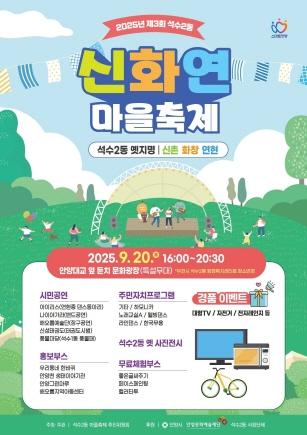 석수2동은 오는 20일 16시부터 안양대교 옆 둔치에서 ‘2025년 제3회 석수2동 신·화·연 마을축제’를 개최한다.