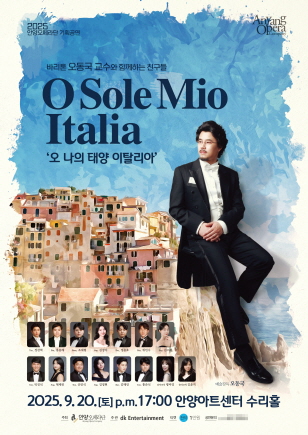 안양시 안양아트센터 수리홀에서 20일 오후 5시에 열리는 ‘오 나의 태양 이탈리아’는 오동국 교수에게서 사사한 안양대 성악전공 학생과 졸업생 등 13명이 참여해 아름다운 우리 가곡과 이탈리아 가곡, 오페라 아리아를 선보인다.