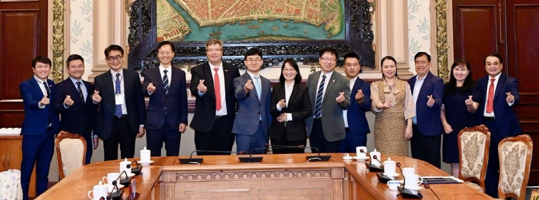 (호치민=NSP통신) 서국현 기자 = 16일 오후(현지시각) 베트남 호치민시 인민위원회 본부에서 쩐티디에우투이(Tran Thi Dieu Thuy) 호치민시 인민위원회 부위원장은 쩐하이린(Tran Hai Linh) 베트남 조국전선 중앙위원 겸 베트남-한국기업투자협회(VKBIA)회장, 김현곤 경기도경제과학진흥원(GBSA, 한국)원장 및 대표단과 회동했다.