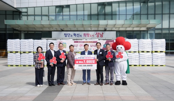 받은 쌀은 성남시 50개 동 행정복지센터를 통해 기초생활보장수급 독거노인과 가정위탁아동 가구에 1포대씩 전달하기로 했다.