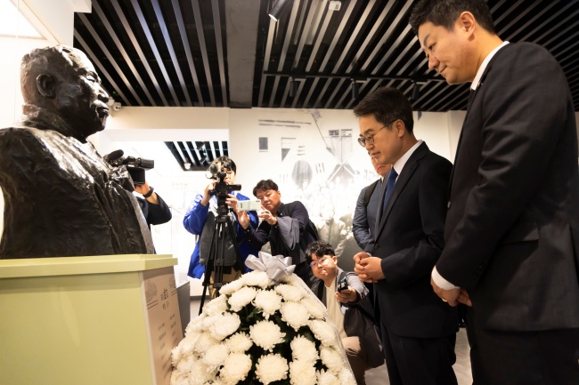 김동연 지사와 김진경 경기도의회 의장 등 대표단은 김구 임시정부 주석 흉상 앞에서 헌화와 묵념을 한 뒤 역사관과 전시실 등을 돌아봤다.