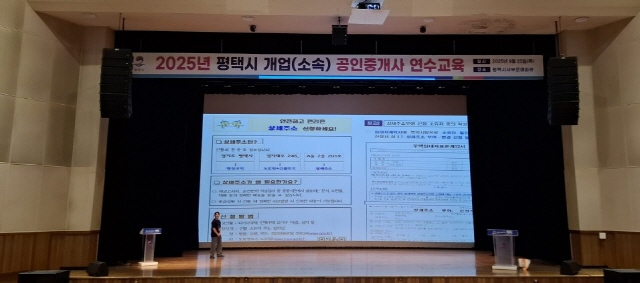 (경기=NSP통신) 김병관 기자 = 경기 평택시(시장 정장선) 토지정보과는 25일 서부문화예술회관에서 실시한 ‘2025년 공인중개사 연수교육’ 현장에서 ‘상세주소제도’ 등 도로명주소 관련 홍보를 했다.