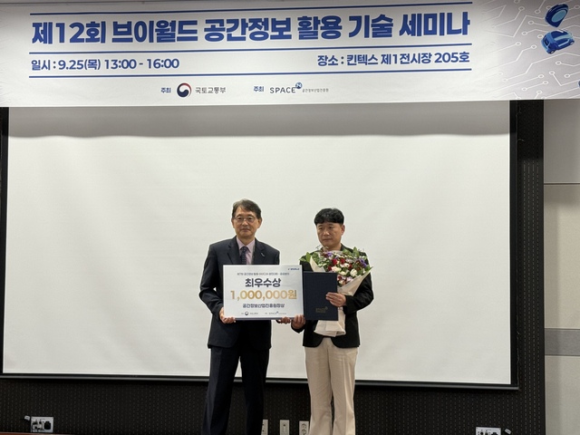 시상식은 25일 일산 킨텍스에 열린 ‘2025 공간정보기술박람회(K-Geo Festa)’에서 진행됐으며 심사는 공간정보를 활용한 기관 업무 개선 우수사례 등에 대해 전달성, 효과성, 지속성 등 6개 항목 평가로 진행됐다.