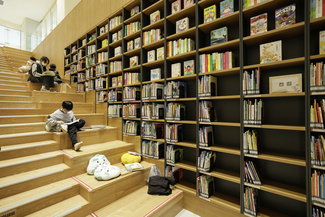 2층은 어린이·유아자료실을 중심으로 구성돼 아동 도서가 구비돼 있다. 또 ▲5면 3D와 터치센서를 활용한 체험형 동화구연실 ▲미디어 아트존 ▲인터렉티브 월 ▲핑거스토리(AR북) 등 아이들의 호기심을 자극하는 감각적이고 체험 중심의 콘텐츠가 마련돼 있다.