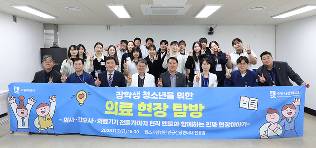 윌스기념병원은 지난 7일 수원시장학재단 장학생(고등학생, 대학생)을 대상으로 의료현장 견학과 의료계 직무별 멘토링, 혈압·채혈 등의 실습 등 의료기관의 실제 업무 환경을 보여주고 학생들의 진로 탐색 기회를 제공하는 ‘의료현장 탐방’을 실시했다.