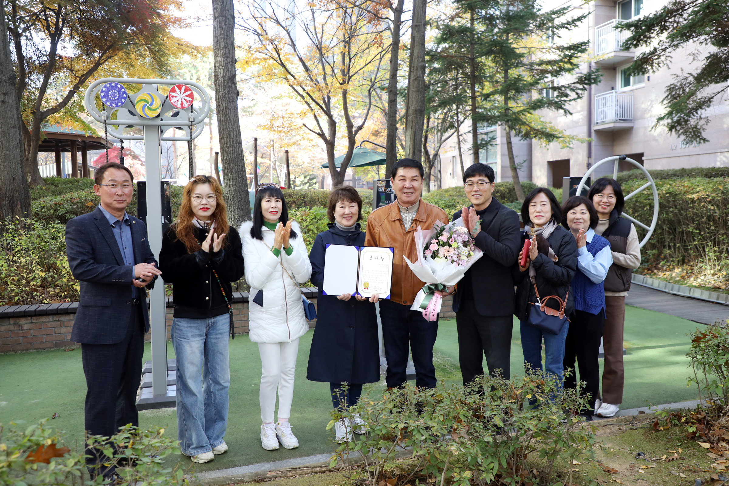 감사장은 유 의원이 단지 내 노후 운동기구 교체 사업을 적극 지원해 입주민들의 건강 증진과 생활 복지 향상에 기여한 공로를 인정받아 수여됐다.