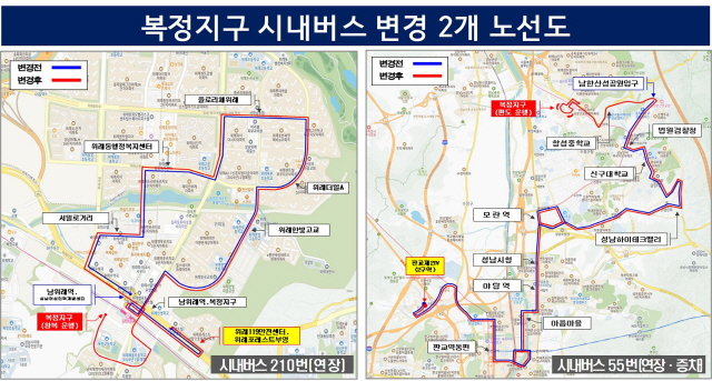 신설 노선 외에도 기존 55번과 210번 등 두 개 노선이 변경된다. 55번은 종점이었던 남한산성공원입구에서 복정지구까지 연장되고 증차되며 이를 통해 복정지구 중학생들이 창성중학교로 이동할 수 있는 통학 수단이 마련된다.