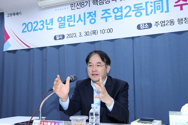 이동환 시장은 30일 주엽2동 행정복지센터에서 ‘주민과의 대화’에서 “정부는 지금 1기 신도시를 포함한 노후 계획도시 주민들의 주거 여건 개선을 위해 특별법을 마련하고 있다”며 “특별법 통과에 맞춰 빠르게 진행할 수 있도록 안전진단 등 재건축 준비를 미리 하겠다”고 말했다.