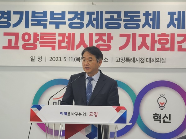 존경하는 경기도민 여러분, 사랑하는 고양 특례 시민 여러분! 저는 오늘, 위대한 대한민국의 자치 성공시대와 자랑스런 경기도의 도민 행복시대를 열어가기 위해 고양특례시장으로서 경기북부경제공동체 구성을 공식 제안한다.